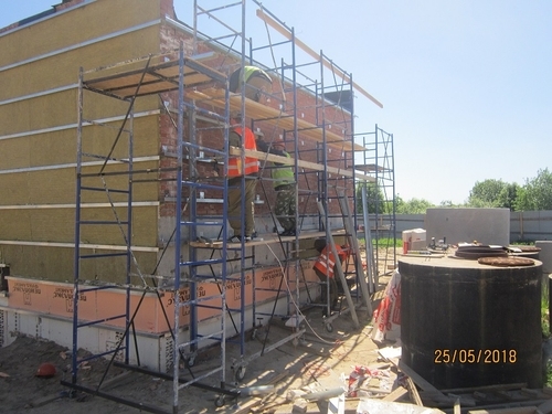 Выполняли работы по капитальному ремонту фасада в многоквартирном доме. Выполнили монтаж подсистемы на фасадные анкера, минеральной ваты 100 ммс пароизоляцией. Облицевали фасад профнастилом. Установили оконные откосы, фасонные элементы и отливы из оцинкованной стали. Работы велись с фасадных подъемников.